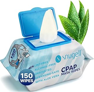 2. Snugell Unscented Travel CPAP Mask Wipes Antibacterial (150 Count) –100% Soft Cotton– Lint & Alcohol-Free,Skin Safe with Aloe Vera – Easy Opening CPAP Cleaner and Sanitizer for Masks, Tubes & Devices (⭐️ 4.6)